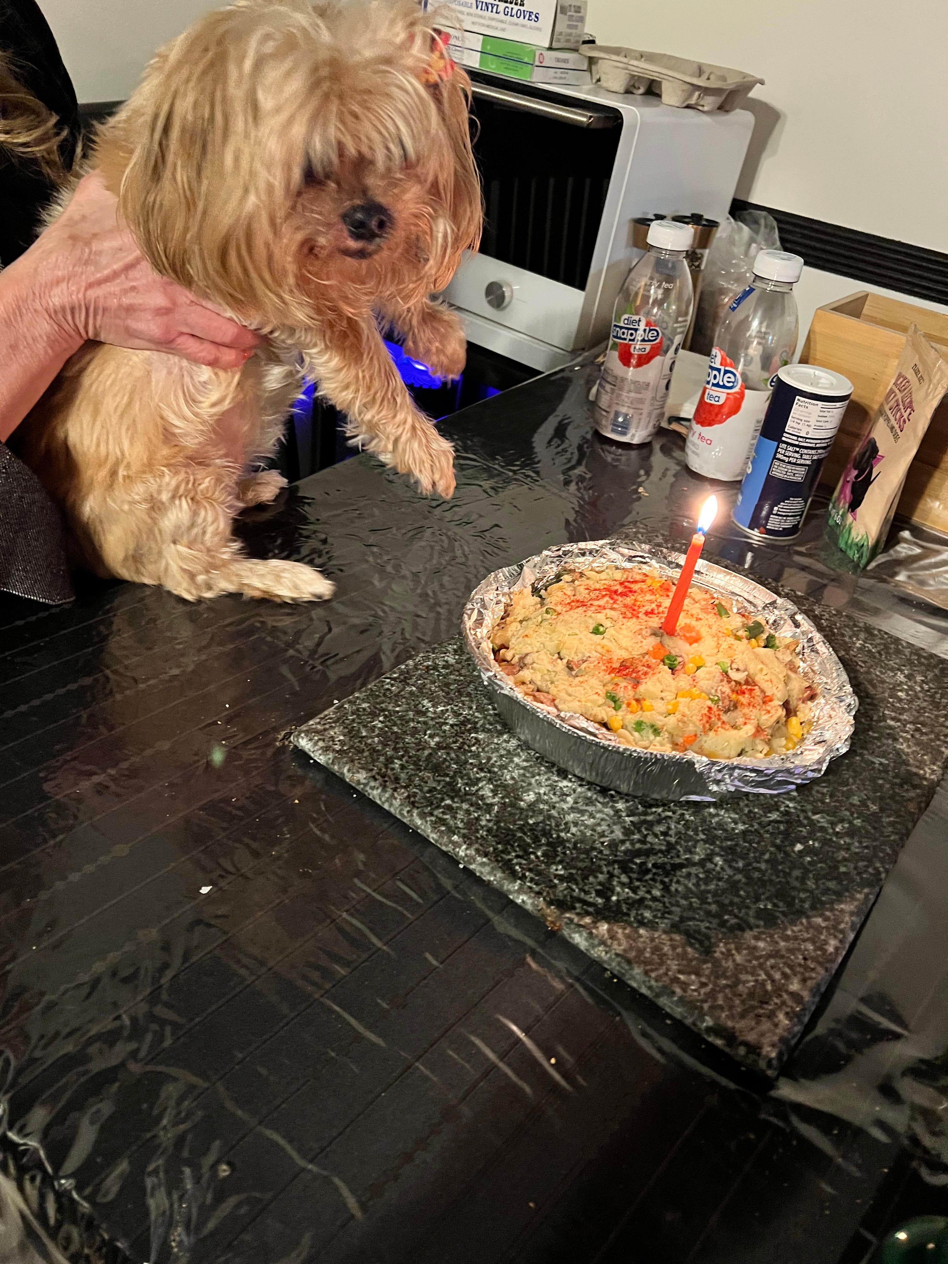 (Her "cake" is a meatloaf with mashed potatoes and mixed veggies. Her and Lily love it and they have a version of it often on birthdays!)